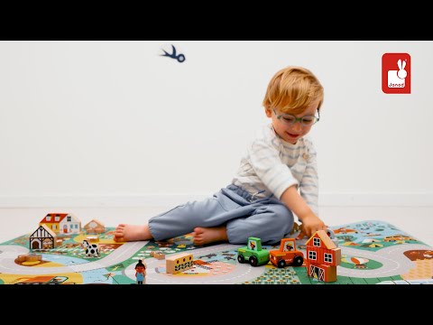 Ah, la campagne ! Dans ce décor bucolique et champêtre, on passe de la ferme à la forêt, et même par le centre équestre ! Ce tapis de jeu campagne convient aux enfants à partir de 2 ans. Il possède une large et longue route, pour prendre la clé des champs et imaginer des histoires à l’infini ! Sur leur tapis de jeu avec circuit, les petits s’amusent sur les routes sinueuses de campagne à la recherche d’éléments cachés, tel un cherche et trouve. On repère où se trouve le loup dans la forêt, le fermier dans son tracteur, et on s’amuse des petits canards qui traversent la rivière … Il y a tant de bâtiments, d’animaux et de personnages représentés ! On débute avec l’arrosage du potager, puis on file aider le berger à garder ses moutons, avant de se rendre au centre équestre pour une balade à cheval. Avec leur tapis de jeu en tissu, les enfants développent leur imagination et leur vocabulaire, mais aussi leur sens de l’observation. Les plus petits découvrent même les couleurs et les chiffres de 1 à 10 ! Autre atout de ce tapis de jeu pour enfant : il est antidérapant ! Parfait pour y faire rouler des petites voitures, ou tout simplement pour les petits qui ont la bougeotte. Dans son format 120 x 78 cm, ce tapis pour chambre d’enfant offre d’autres possibilités de jeu avec ses accessoires (vendus séparément) : il peut être complété d’une panoplie de véhicules et de cubes en bois, issus, eux aussi, de notre gamme Cross Roads. Vous pouvez également relier ce tapis ferme avec d’autres tapis de la collection, pour créer un espace de jeu géant et prolonger les aventures des enfants. En effet, les circuits sont conçus pour s’associer sur les 4 côtés du tapis. Et si on plantait la tente ce soir ?